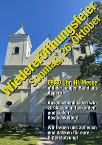 Gerne nehmen wir auch Ihre Onlinespende entgegen: Direkt auf das Renovierungskonto bei der Volksbank Wien. Pfarre Breitenlee, IBAN: AT78 4300 0302 0724 0001, BIC: VBOEATWW, Kennwort: